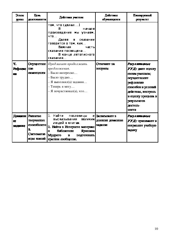 Действия учителя