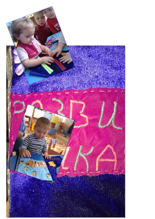 Книжка изготовлена из ткани. На каждой странице задания для малышка, которые он с большим интересом выполняет. Книжка предназначена для развития мелкой моторики детей младшего дошкольного возраста. Здесь ребенок может составить сюжеты на свой вкус и свою фантазию, познакомиться с разными видами застежек.методические рекомендации к книжке.