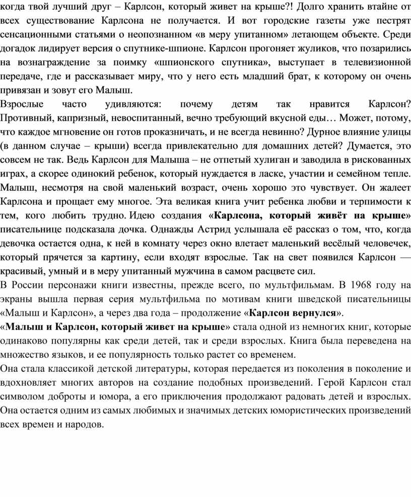 детей? Думается, это совсем не так. Ведь Карлсон для Малыша – не отпетый