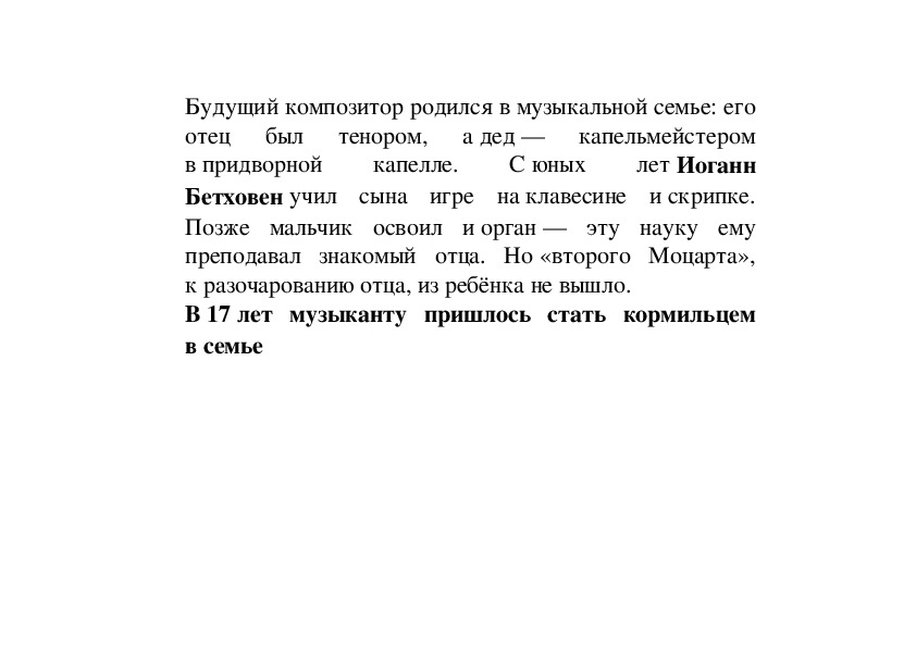 Бетховен вырос в нищете. Отец пропивал свое скудное
