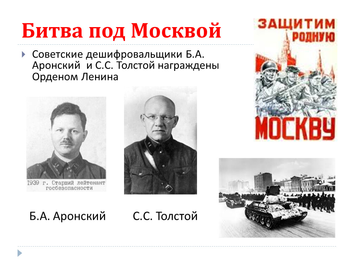 Советские дешифровальщики Б.А. Аронский и С.С. Толстой награждены Орденом Ленина