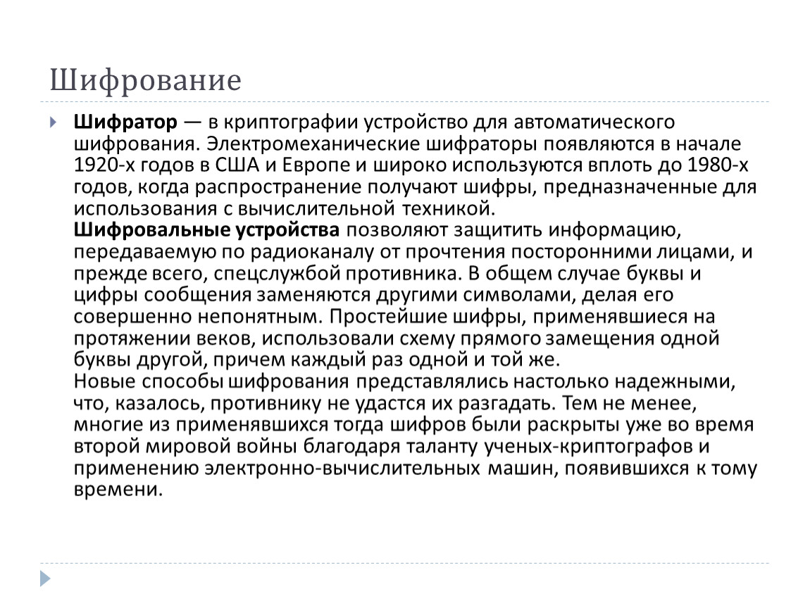 Во время Второй мировой войны сложные технические и криптографические средства зашиты информации стали во многом ключевыми, ведь ценность информации возросла кратно.