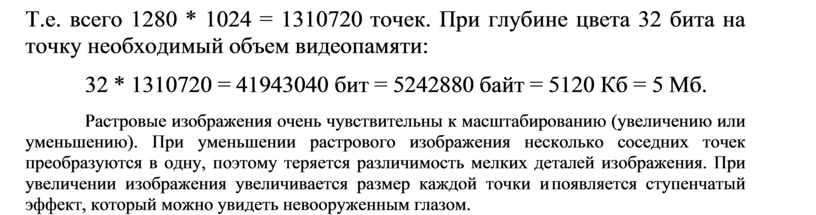 Т.е. всего 1280 * 1024 = 1310720 точек. При глубине цвета 32 бита на точку необходимый объем видеопамяти: