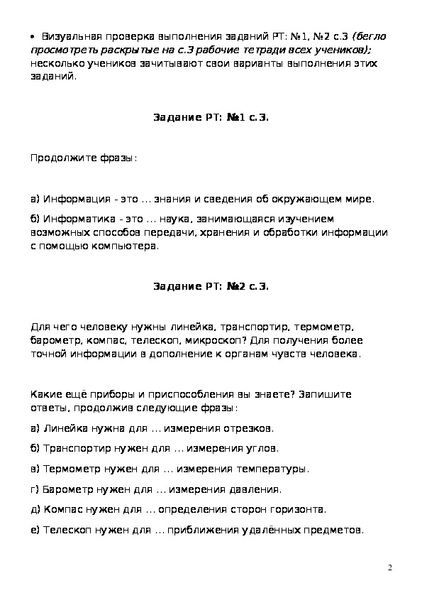 1) Актуализация и проверка усвоения изученного материала:• Визуальная проверка выполнения заданий РТ: №1, №2 с.3 (бегло