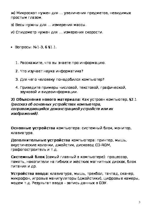 2) Объяснение нового материала: Как устроен компьютер, §2.1