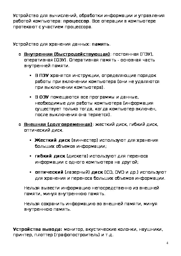 o Внешняя (долговременная): жесткий диск, гибкий диск,