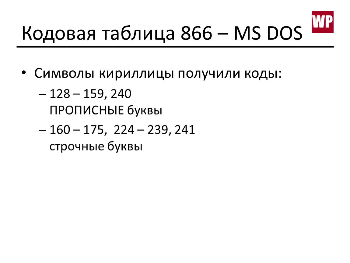 Коды с 128 по 255 были использованы для добавления символов национальных алфавитов, символов псевдографики, некоторых спецсимволов