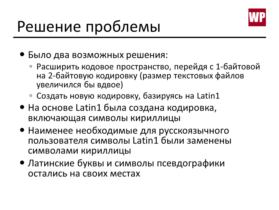 На основе Latin1 была создана кодировка, включающая символы кириллицы