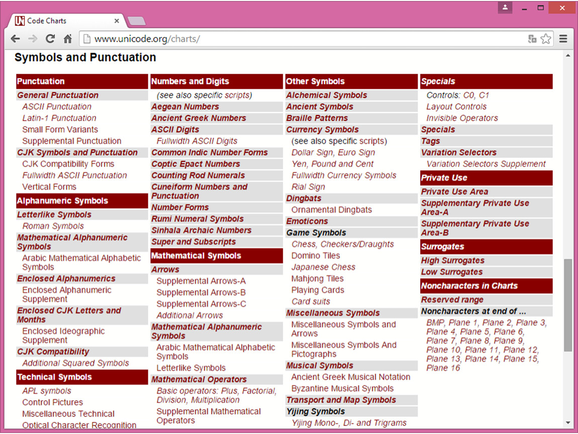 В Unicode представлен широкий набор математических и музыкальных символов, а также пиктограмм.