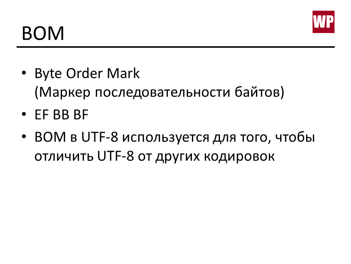 BOM в UTF-8 используется для того, чтобы отличить UTF-8 от других кодировок