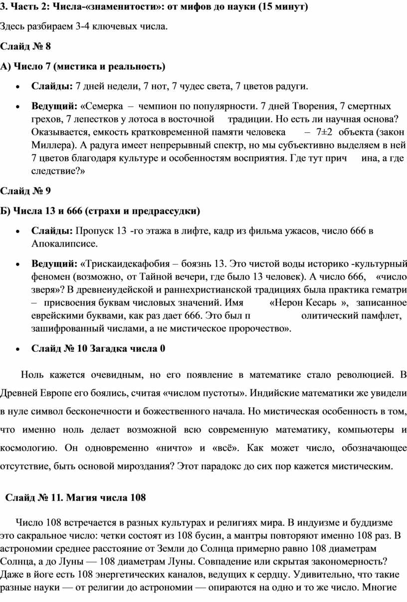 Числа-«знаменитости»: от мифов до науки (15 минут)