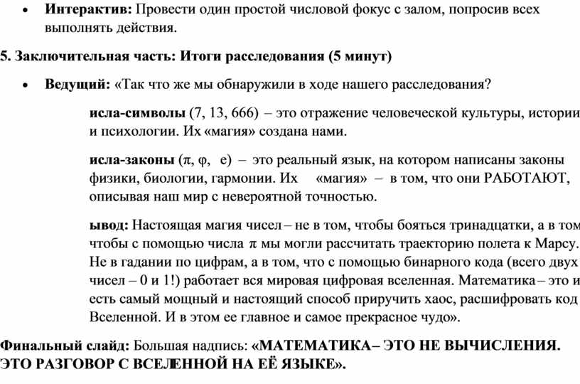 числами – магия, у которой есть формула (10 минут)