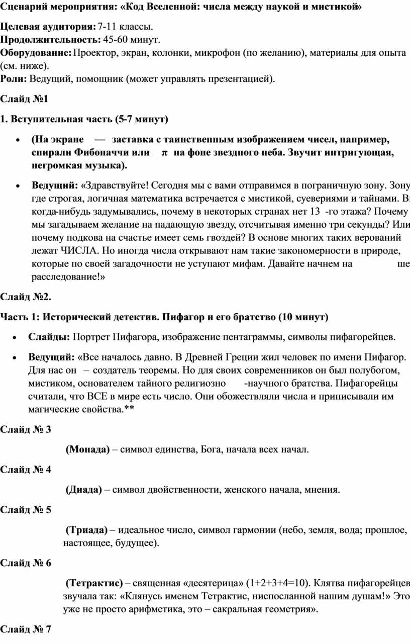 «Код Вселенной: числа между наукой и мистикой»