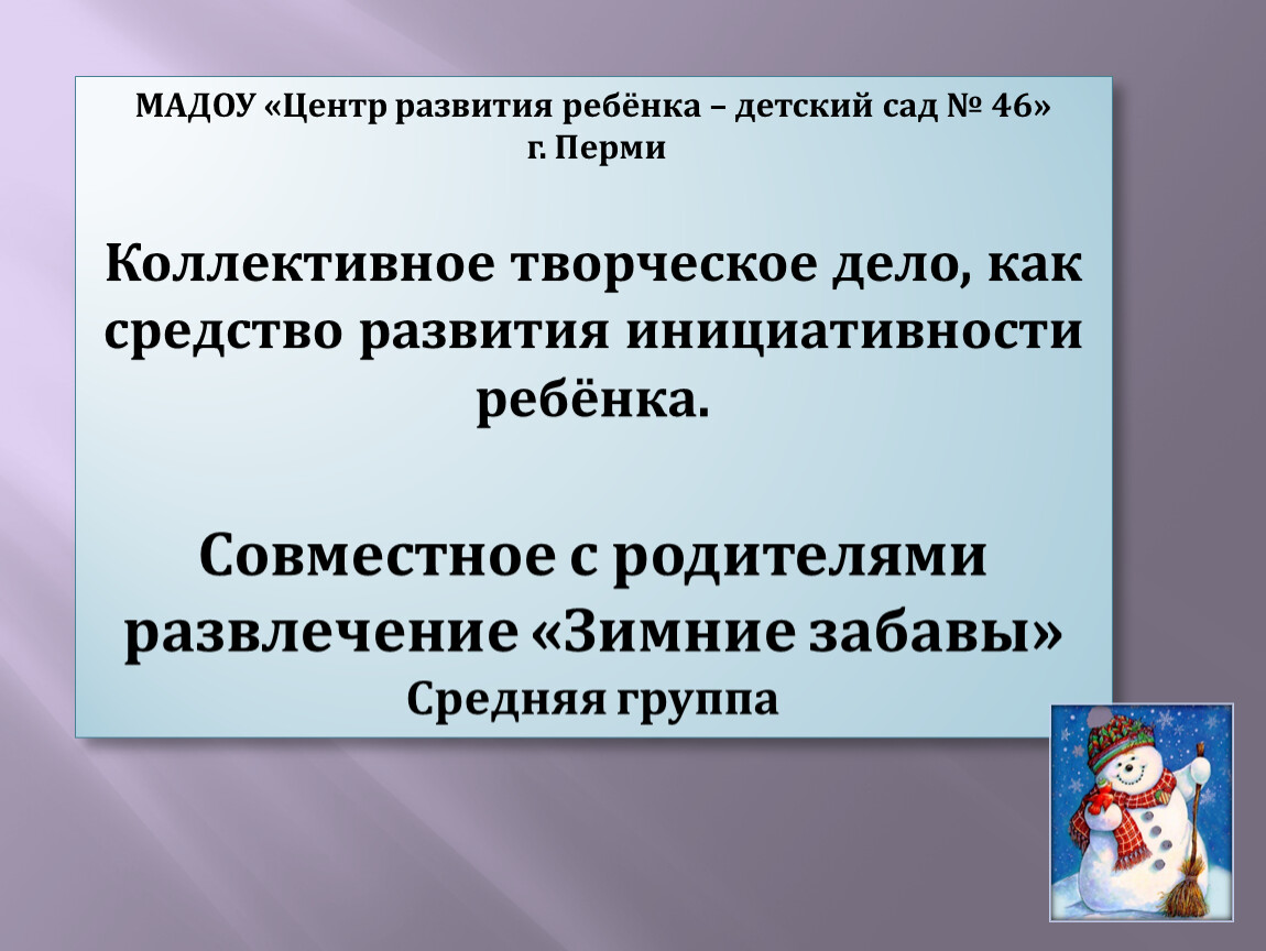 Коллективное творческое дело, как средство развития инициативности ребёнка.
