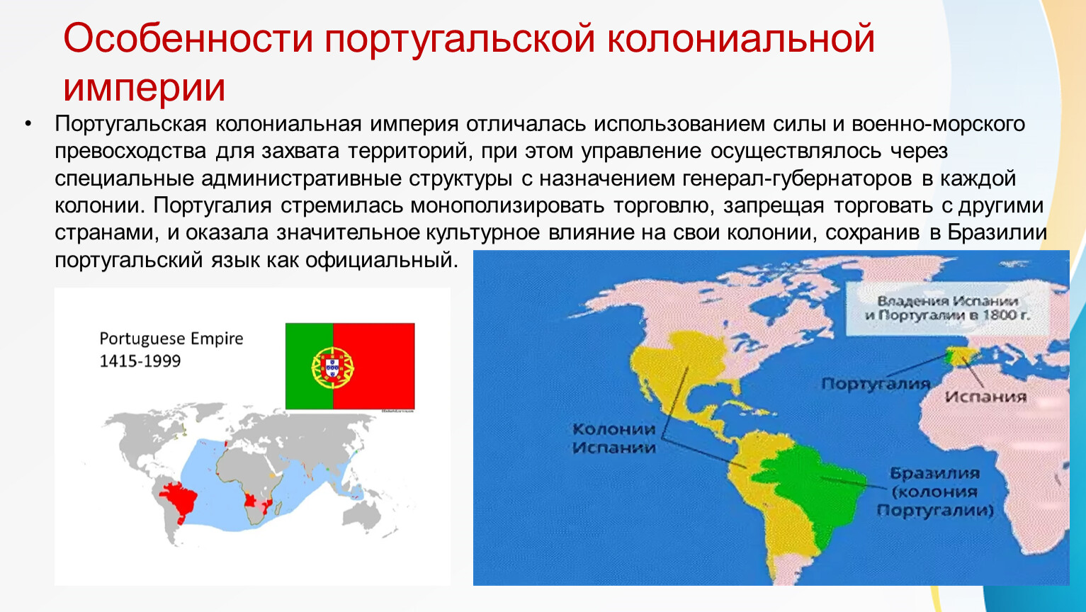 Особенности португальской колониальной империи