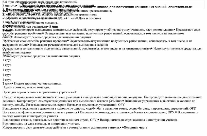 Подает громкие, четкие команды. Проводит серию беговых и прыжковых упражнений. Следит за правильным выполнением команд учащимися и исправляет ошибки, если они допущены. Контролирует выполнение двигательных действий. Контролирует самочувствие учащихся при выполнении беговой разминки |