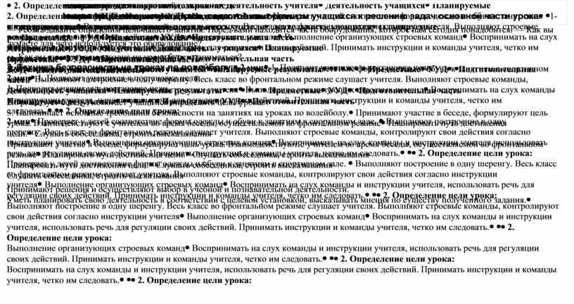 1. Подводит учащихся к постановке цели. 2.Организует беседу, помогает учащимся определить цель урока. 3. Напоминает основные требования безопасности на занятиях на уроках по волейболу. |