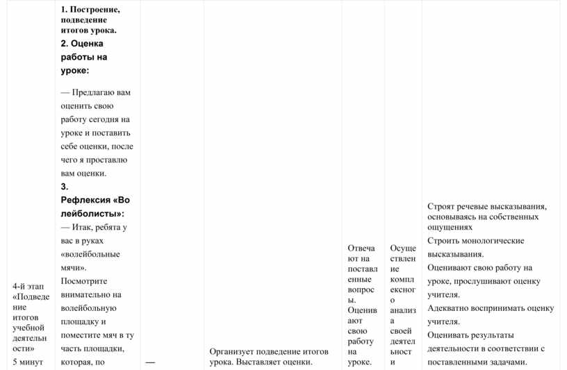 4-й этап «Подведение итогов учебной деятельности» 5 минут |