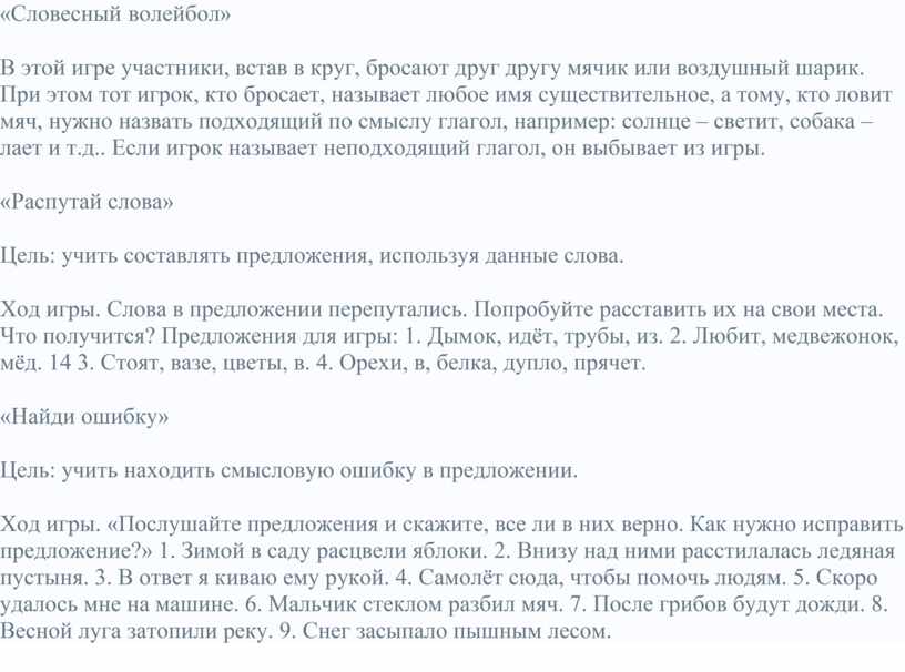 В этой игре участники, встав в круг, бросают друг другу мячик или воздушный шарик. При этом тот игрок, кто бросает, называет любое имя существительное, а тому, кто ловит мяч, нужно назвать подходящий по смыслу глагол, например: солнце – светит, собака – лает и т.д.. Если игрок называет неподходящий глагол, он выбывает из игры.