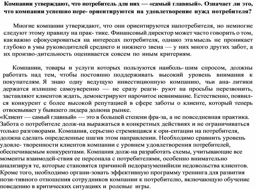 Компании утверждают, что потребитель для них — «самый главный». Означает ли это, что компании успешно пере ориентируются на удовлетворение нужд потребителя?