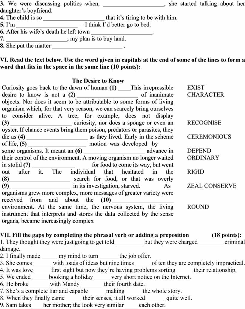 VII. Fill the gaps by completing the phrasal verb or adding a preposition (18 points):