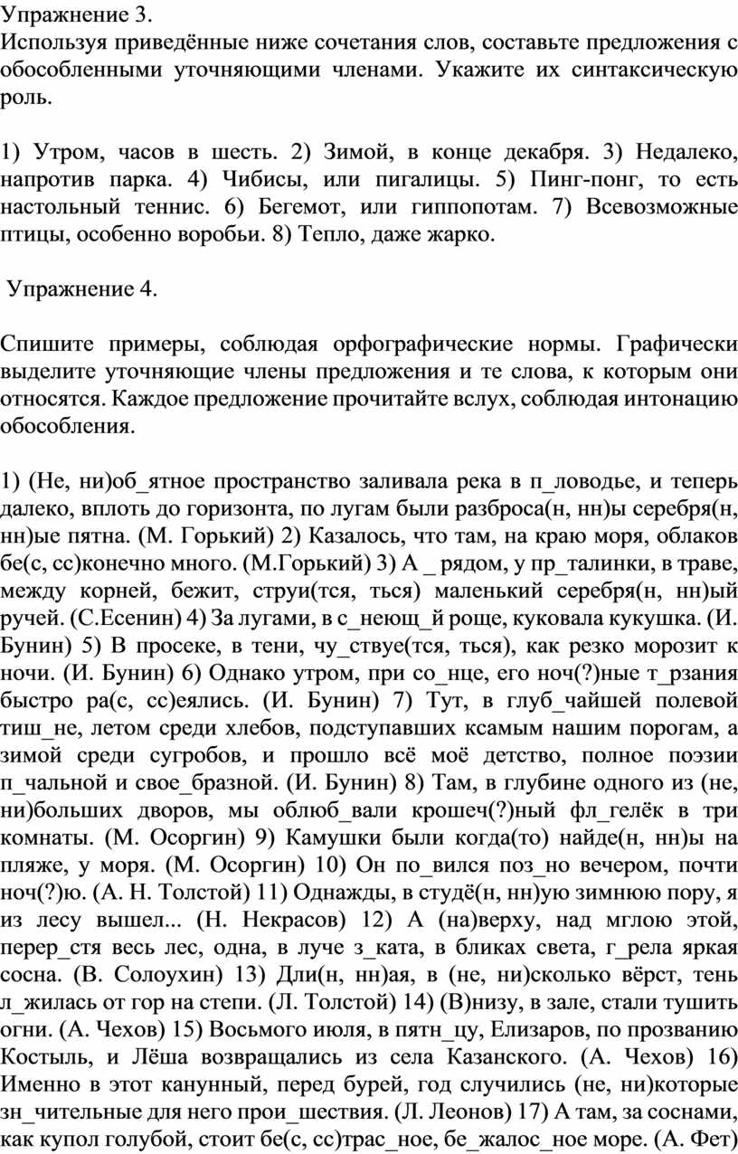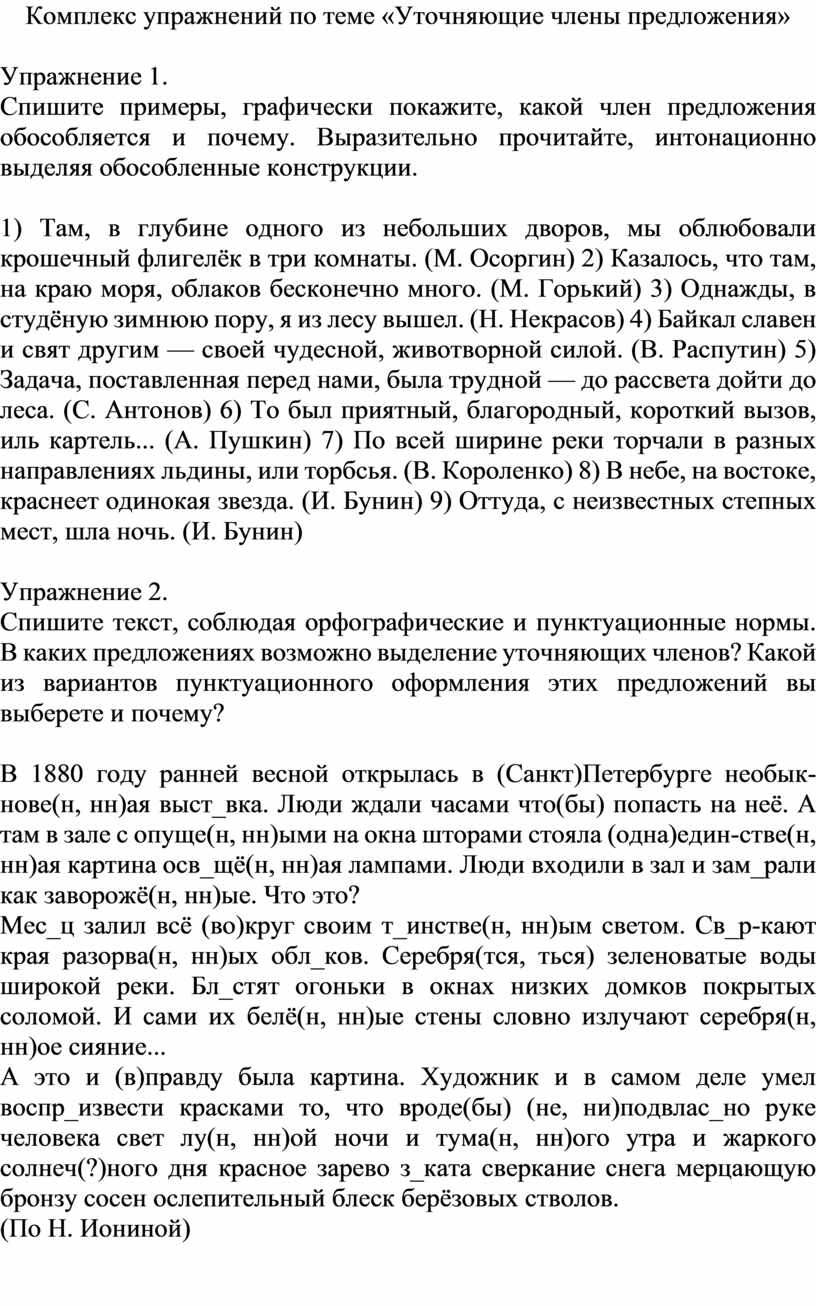 Комплекс упражнений по теме «Уточняющие члены предложения»