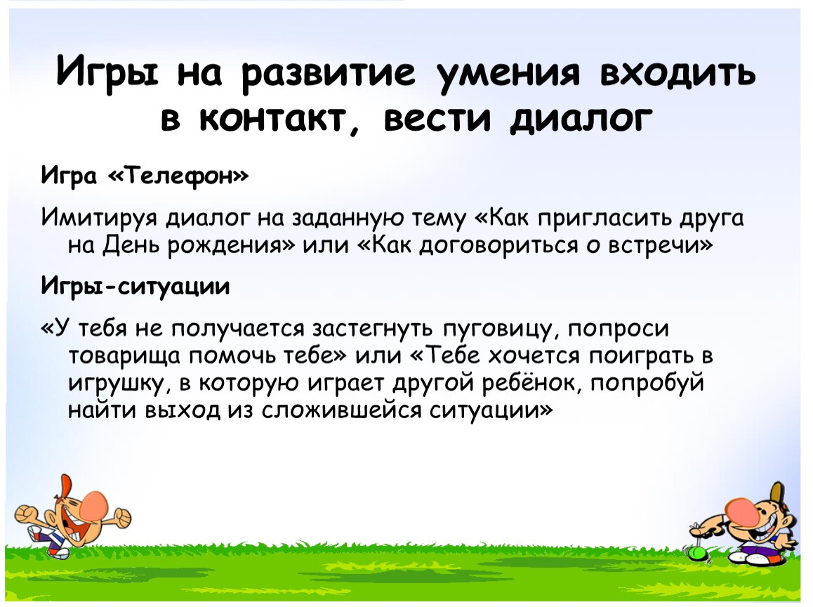 Игры на развитие умения входить в контакт, вести диалог