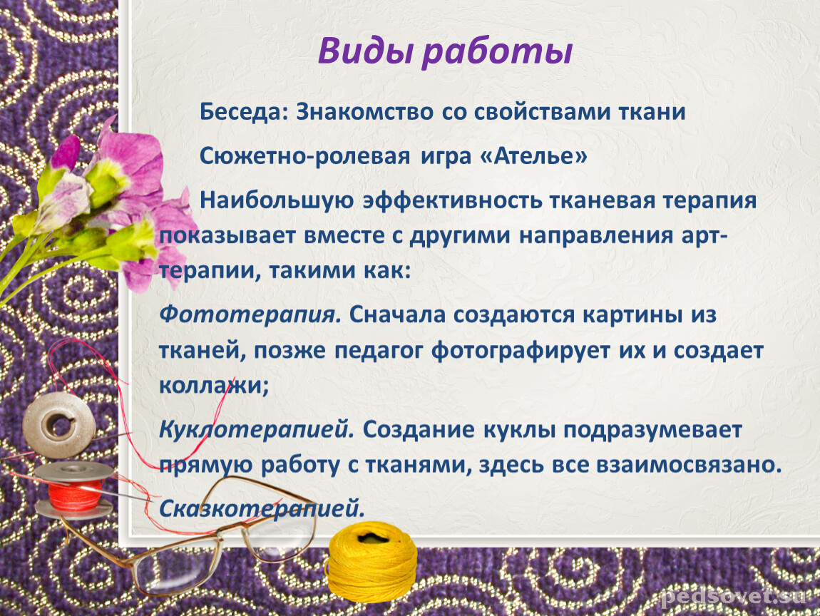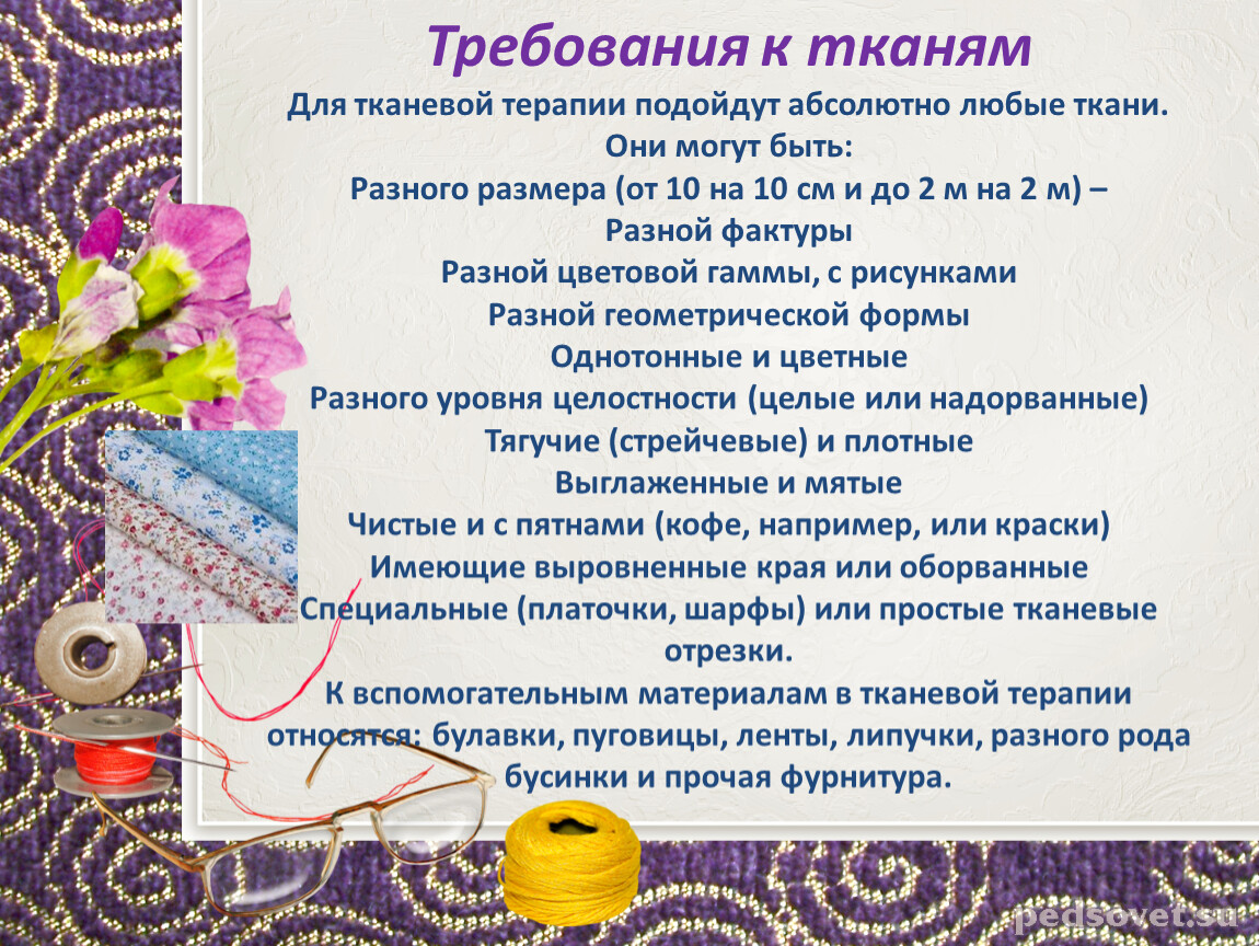 Задачи тканевой арт-терапии: