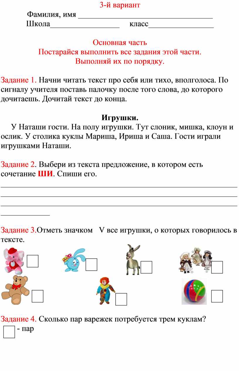 Задание 1. Начни читать текст про себя или тихо, вполголоса. По сигналу учителя поставь палочку после того слова, до которого дочитаешь. Дочитай текст до конца.