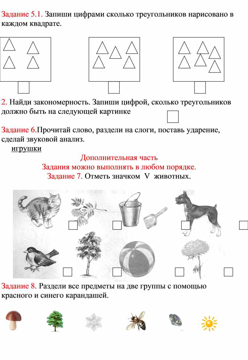 Задание 8. Раздели все предметы на две группы с помощью красного и синего карандашей.
