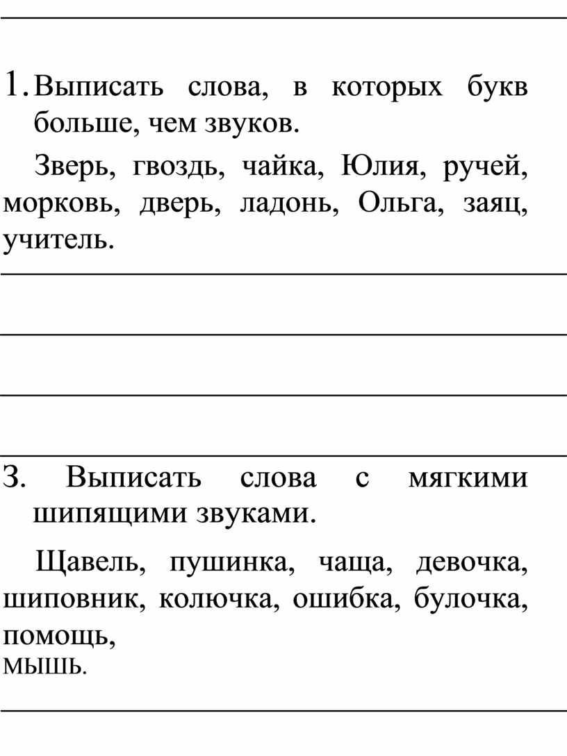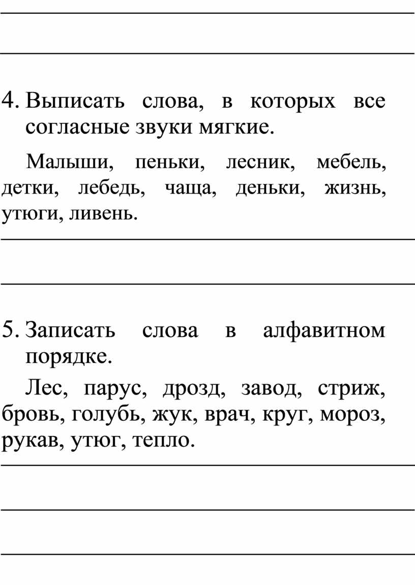 7. Выписать слова, в которых есть мягкие согласные звуки. Подчеркнуть буквы, обозначающие мягкие звуки.