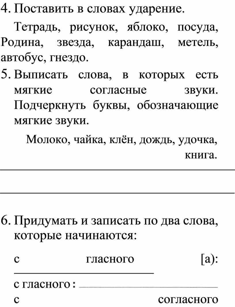 6. Поставить в словах ударение.