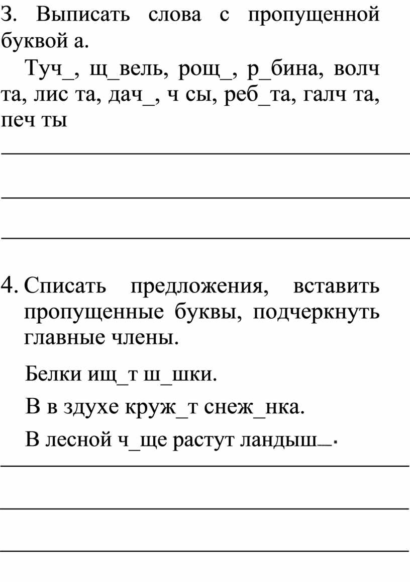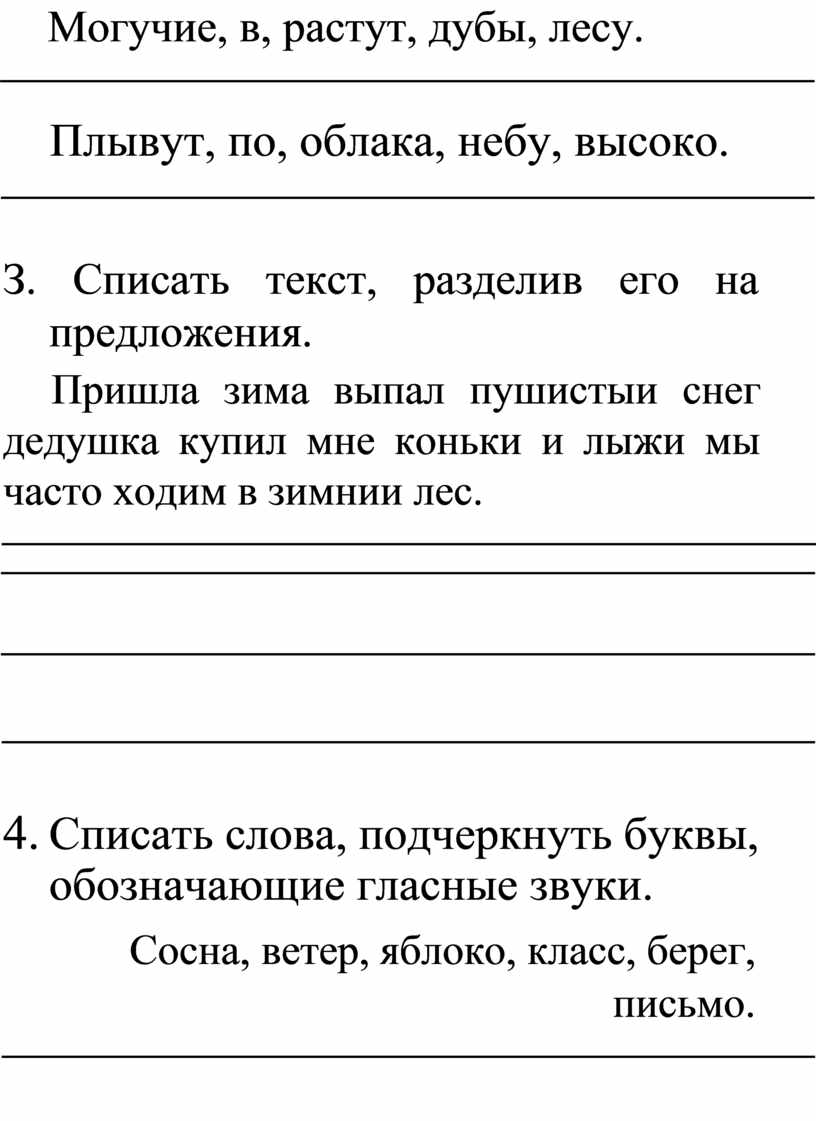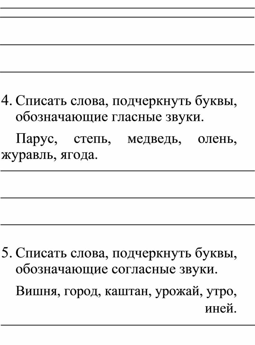 4. Списать слова, подчеркнуть буквы, обозначающие гласные звуки.