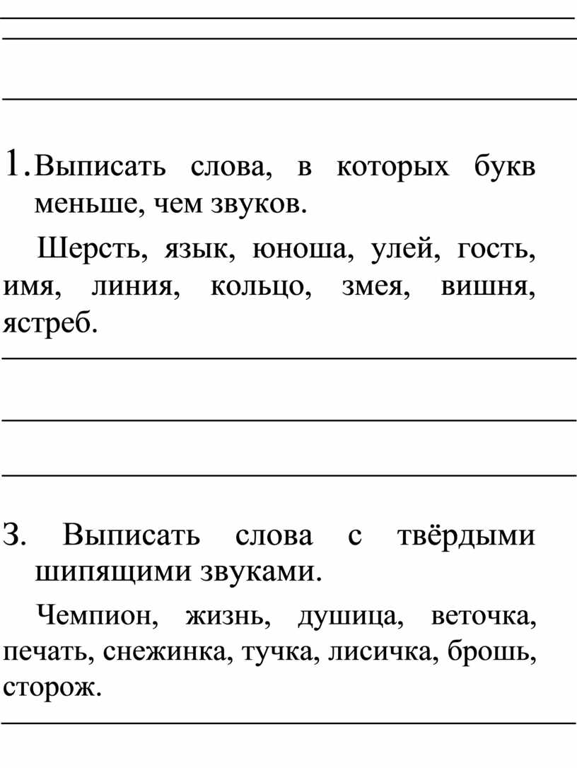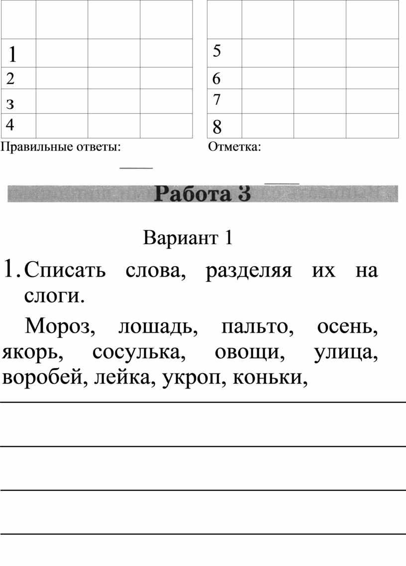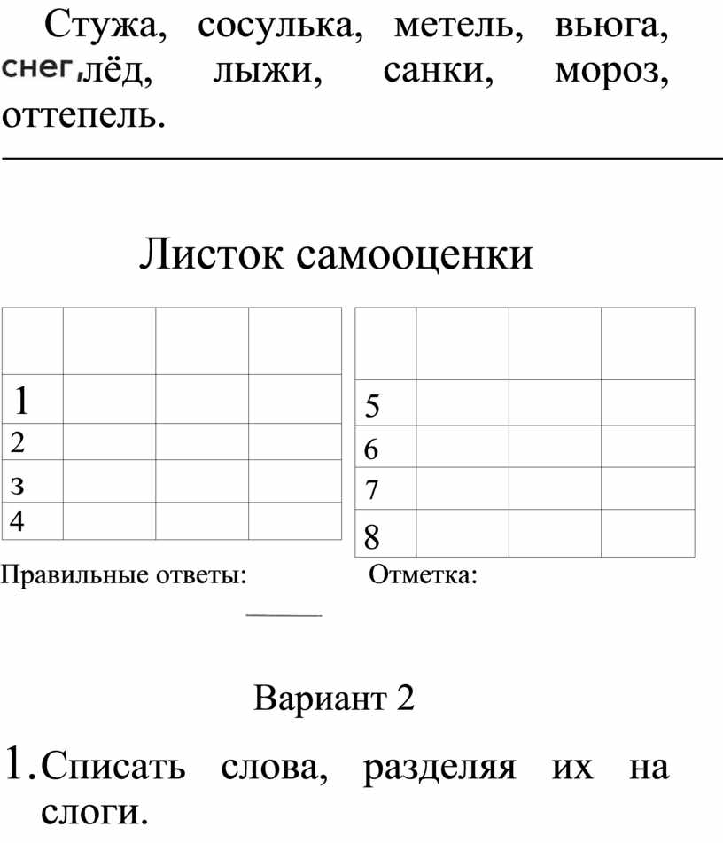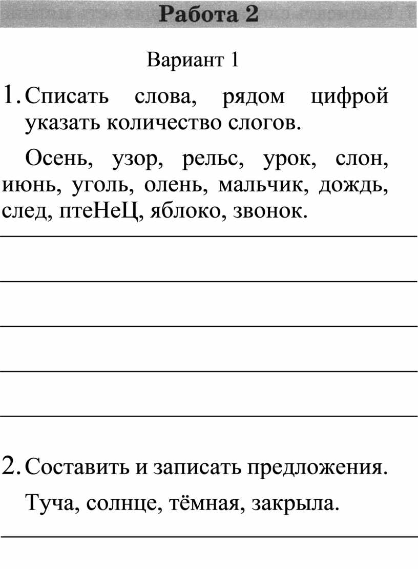 1. Списать слова, рядом цифрой указать количество слогов.