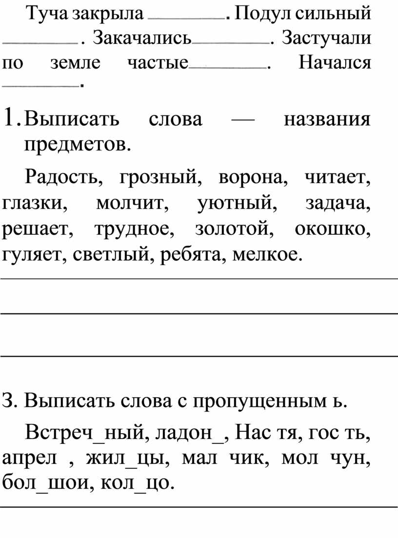 . К данным словам подобрать и записать слова — названия признаков. Дождь (какой?)
