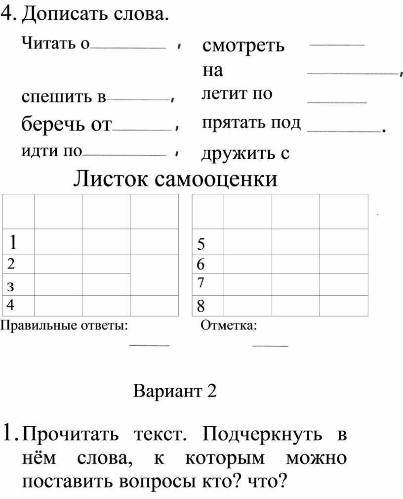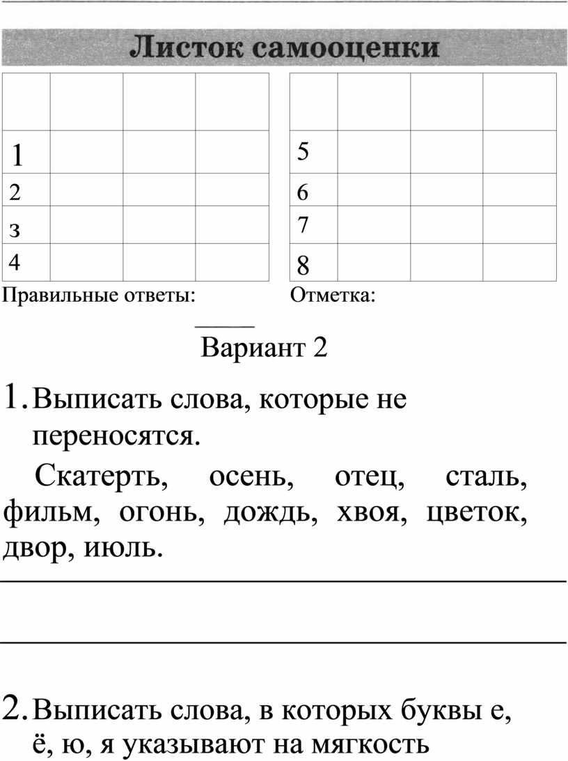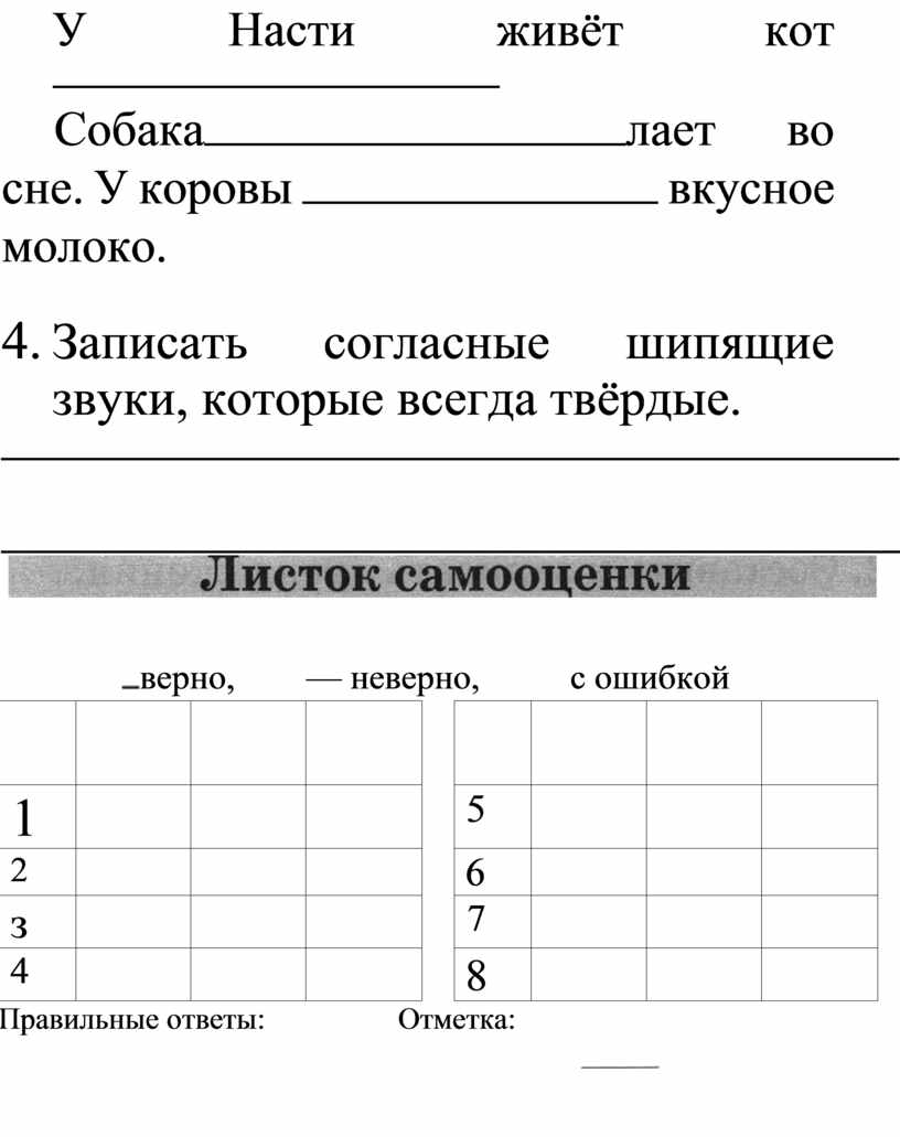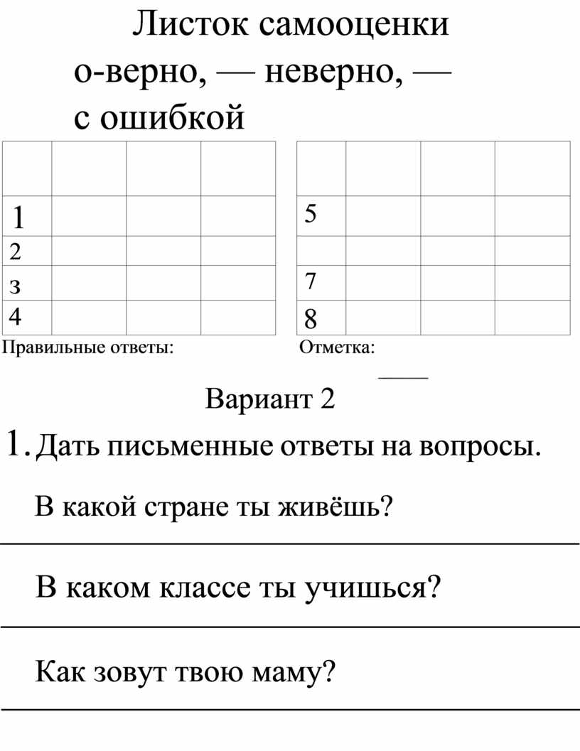 Листок самооценки о-верно, — неверно, — с ошибкой