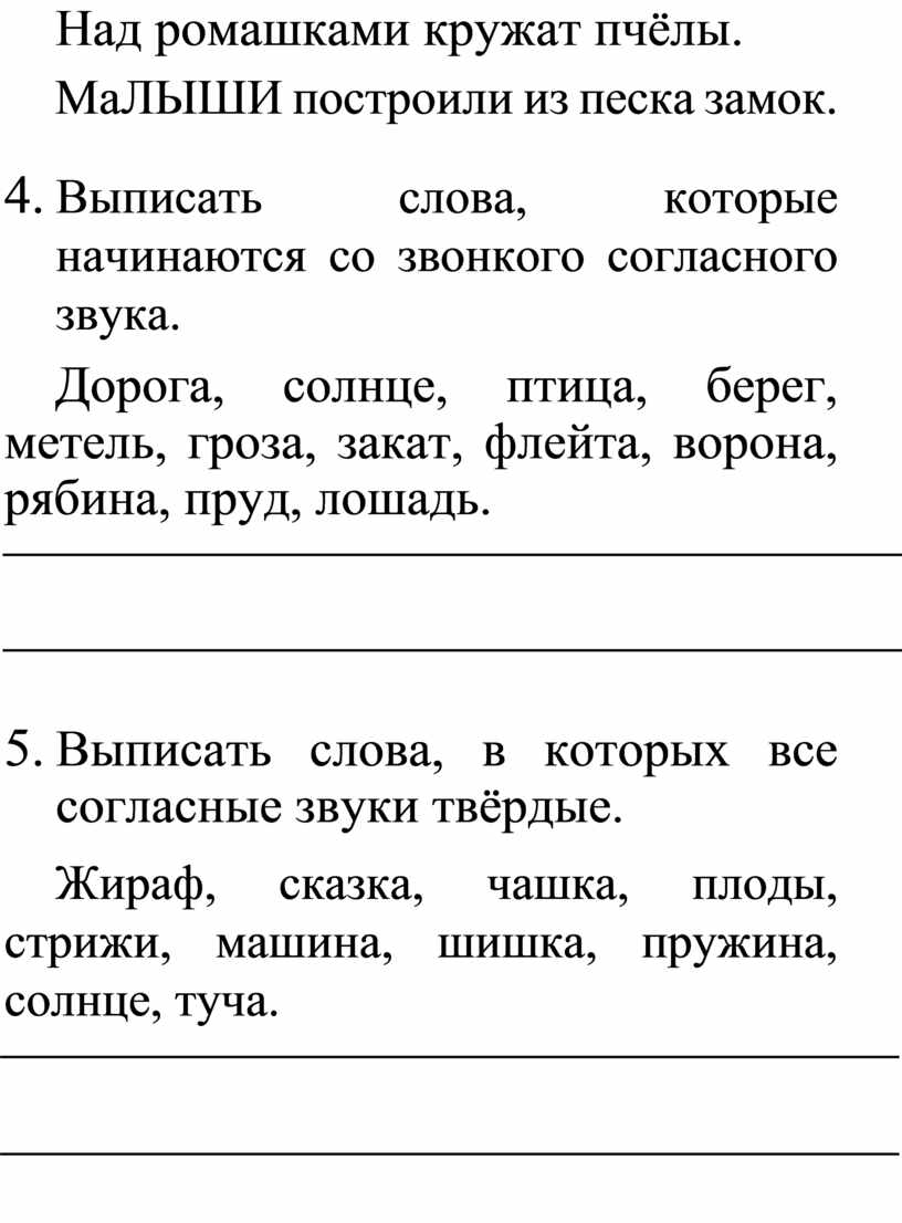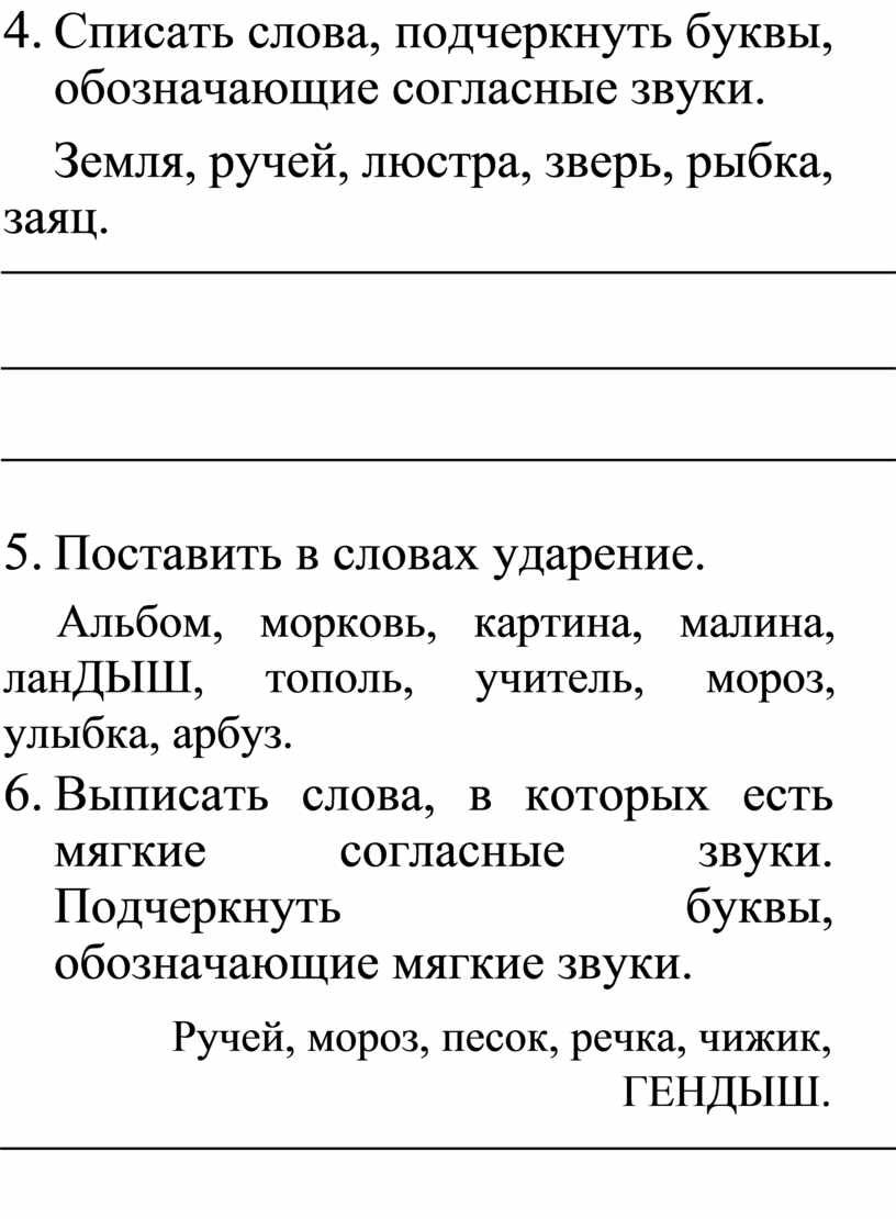 5. Списать слова, подчеркнуть буквы, обозначающие согласные звуки.