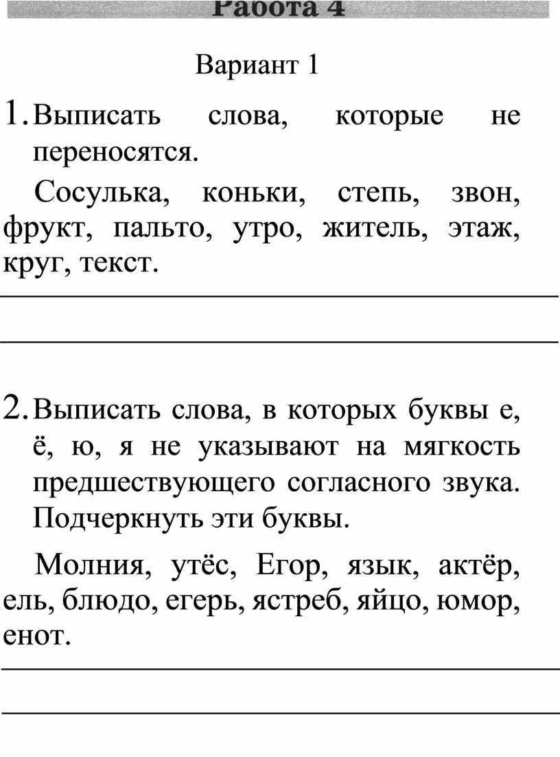 4. Списать слова, разделив их для переноса.