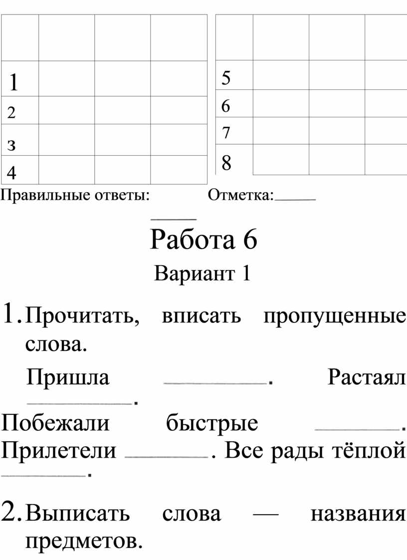 Правильные ответы: Отметка: