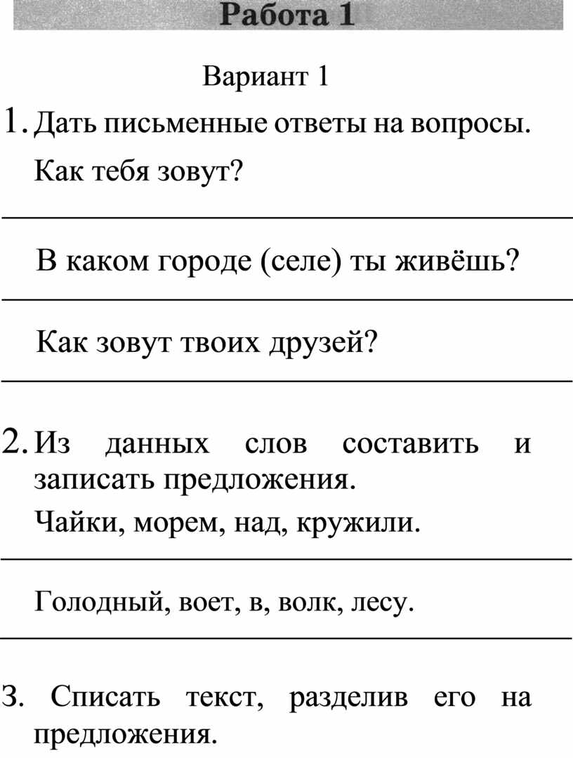 1. Дать письменные ответы на вопросы. Как тебя зовут?