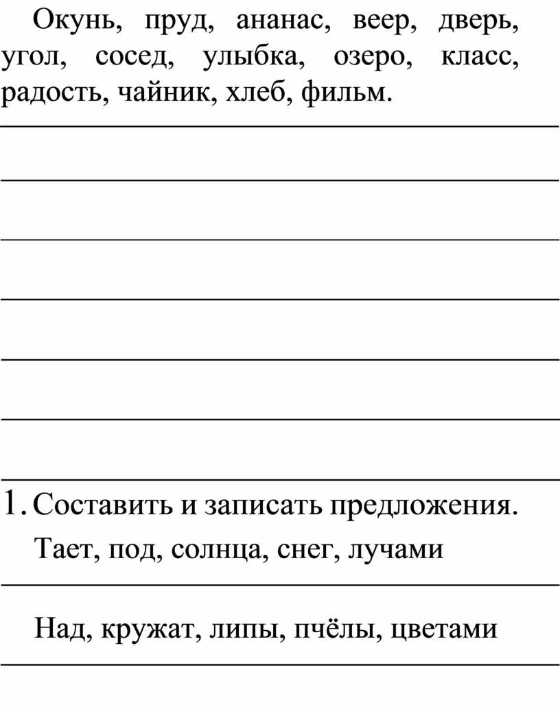 2. Из данных слов составить и записать предложения.