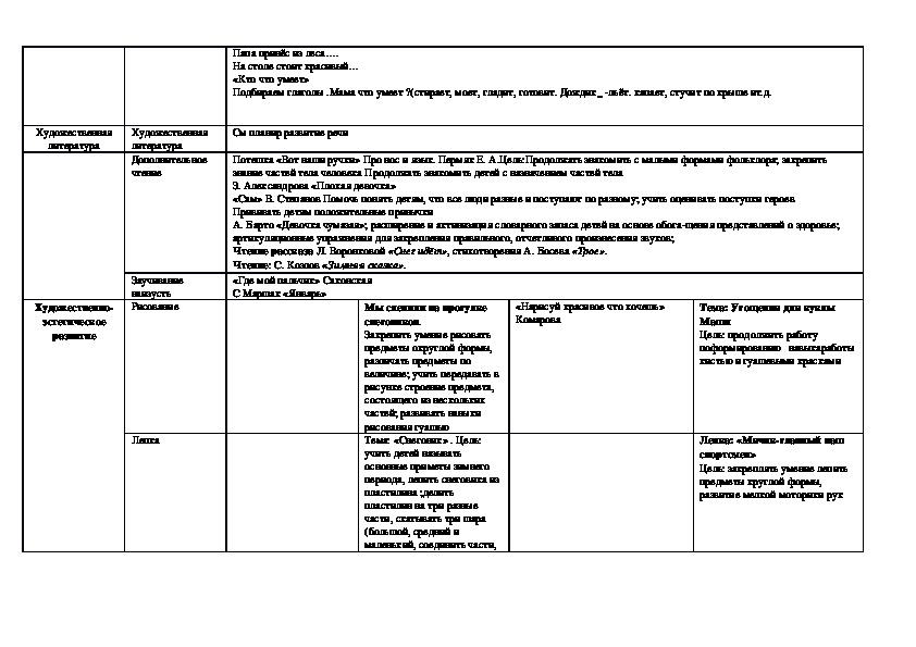 Данный материал представляет собой комплексно-тематическое планирование тематических недель по программе "От рождения до школы"январь. В разработке материал сформирован относительно тематики недели и целей программы. Подборка НОД, игр, дидактических упражнений в соответстиями с возрастными особенностями детей данного возраста. Индивидуальноя и групповая работа.