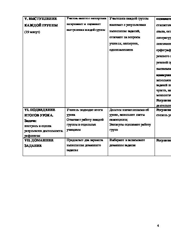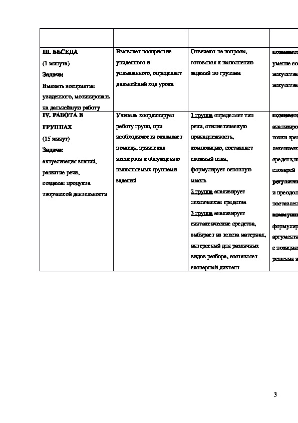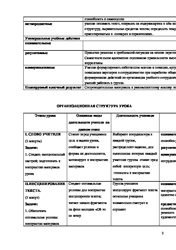 ОРГАНИЗАЦИОННАЯ СТРУКТУРА УРОКА