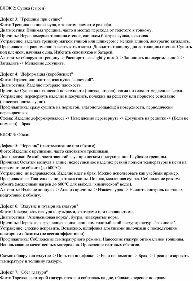 Цель комплекта: наглядно и системно научить учащихся самостоятельно диагностировать дефекты керамики на разных этапах работы, понимать их причины и применять алгоритмы для устранения или предотвращения проблем.