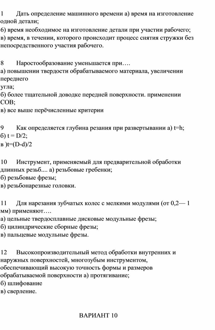 Данный комплект КИМ по дисциплине «Процессы формообразования и инструменты» сочетает контроль теоретических знаний и практических умений и может быть использован в образовательном процессе.