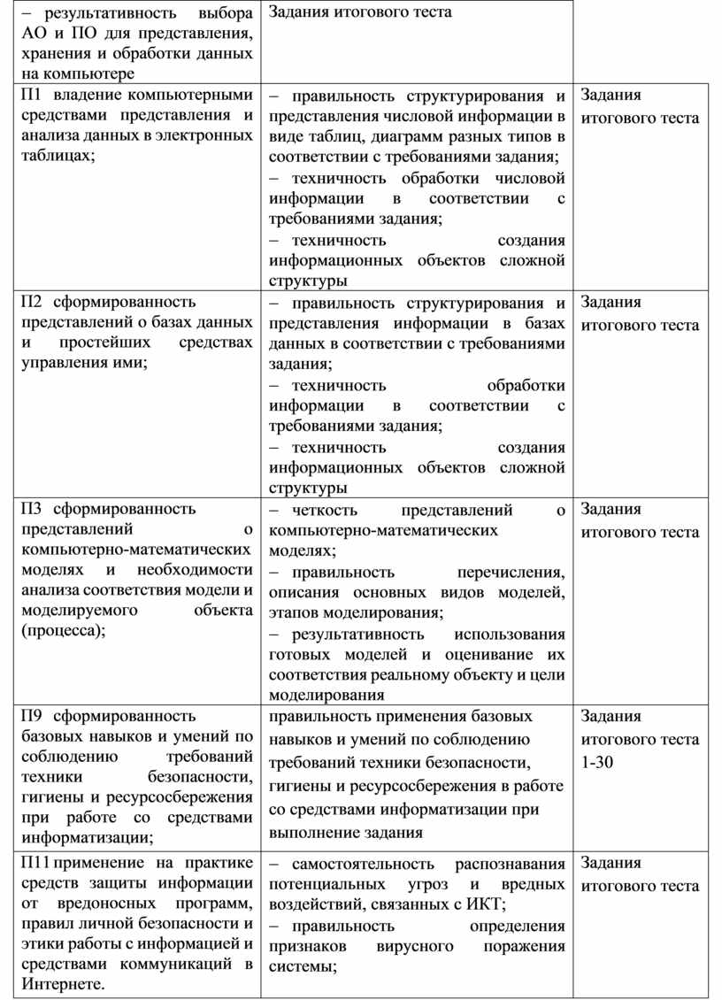 П7 сформированность представлений о компьютерно-математических моделях и необходимости анализа соответствия модели и моделируемого объекта (процесса); |