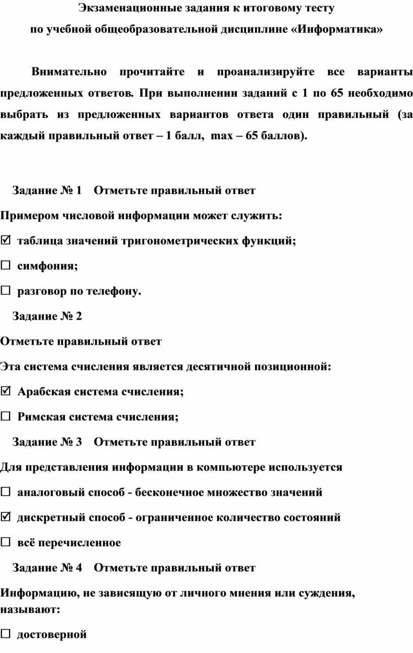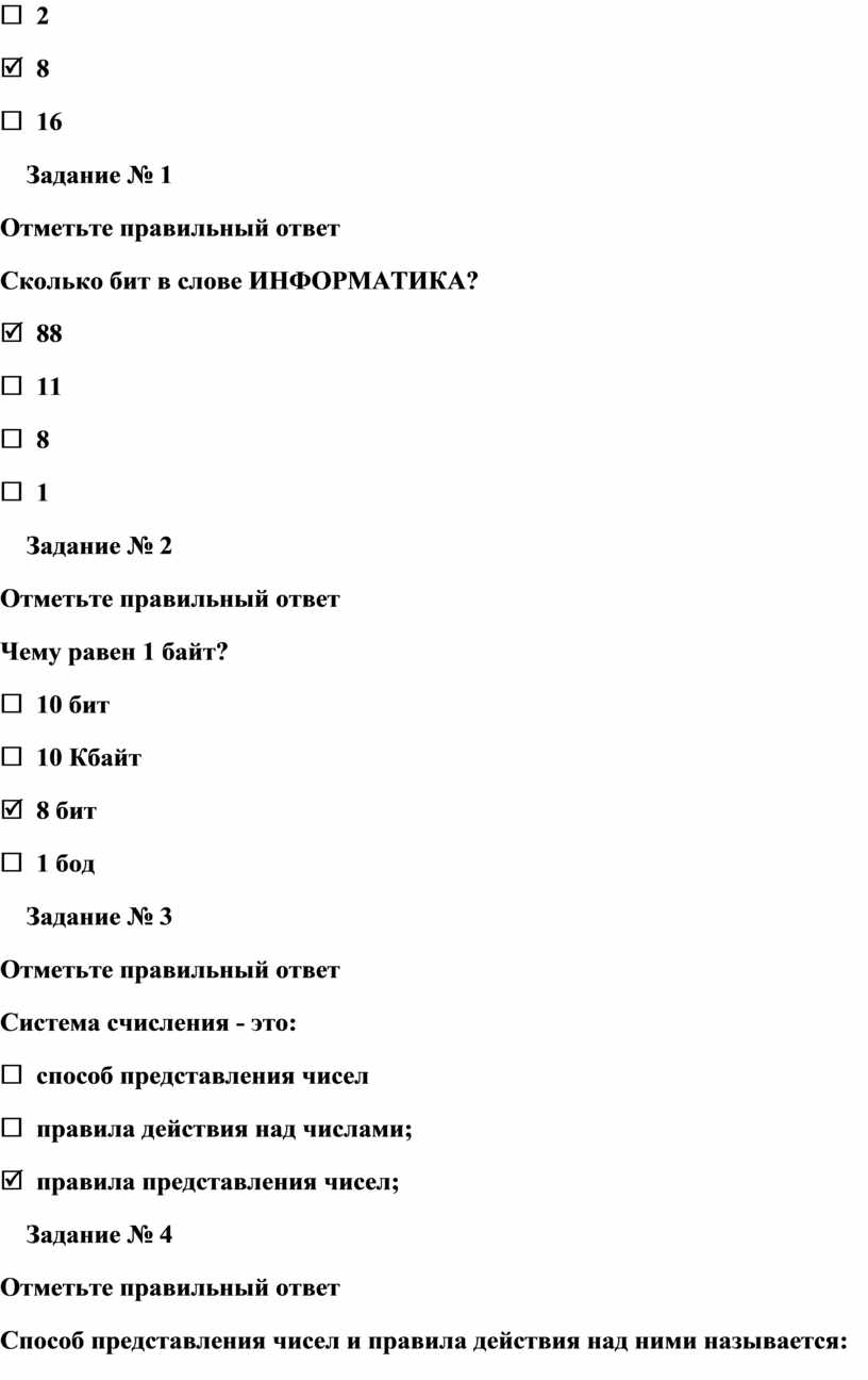 - четкость представления роли информации и информационных процессов в окружающем мире (анализ информации); - правильность определения основных понятий информации и информационных процессов (виды информации, ее свойства); - четкость понимания видов информационных процессов |