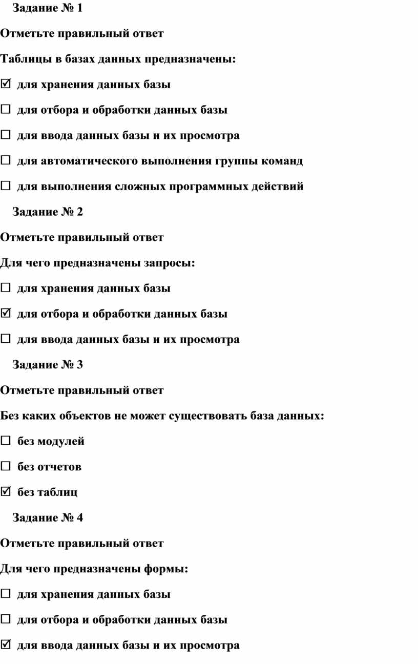 - правильность структурирования и представления информации в базах данных в соответствии с требованиями задания; - техничность обработки информации в соответствии с требованиями задания; - техничность создания информационных объектов сложной структуры |