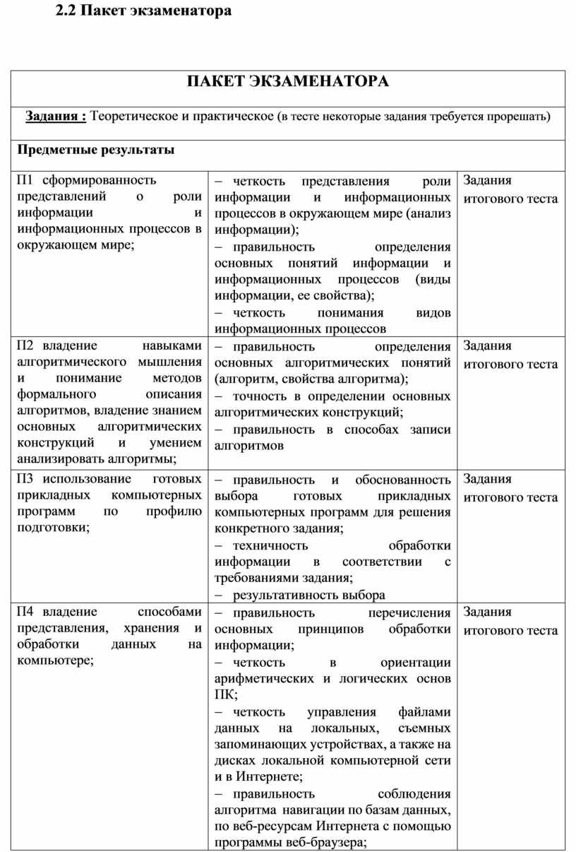 ПАКЕТ ЭКЗАМЕНАТОРА |