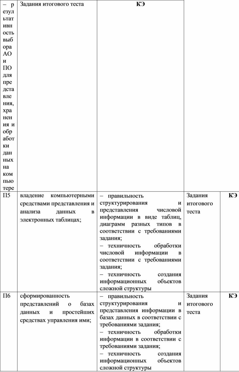 П5 владение компьютерными средствами представления и анализа данных в электронных таблицах; |
